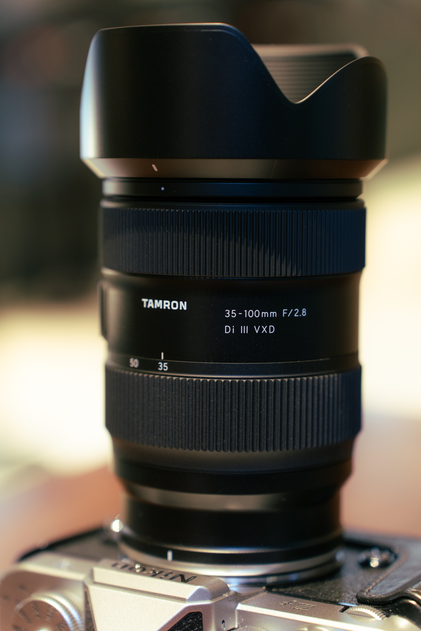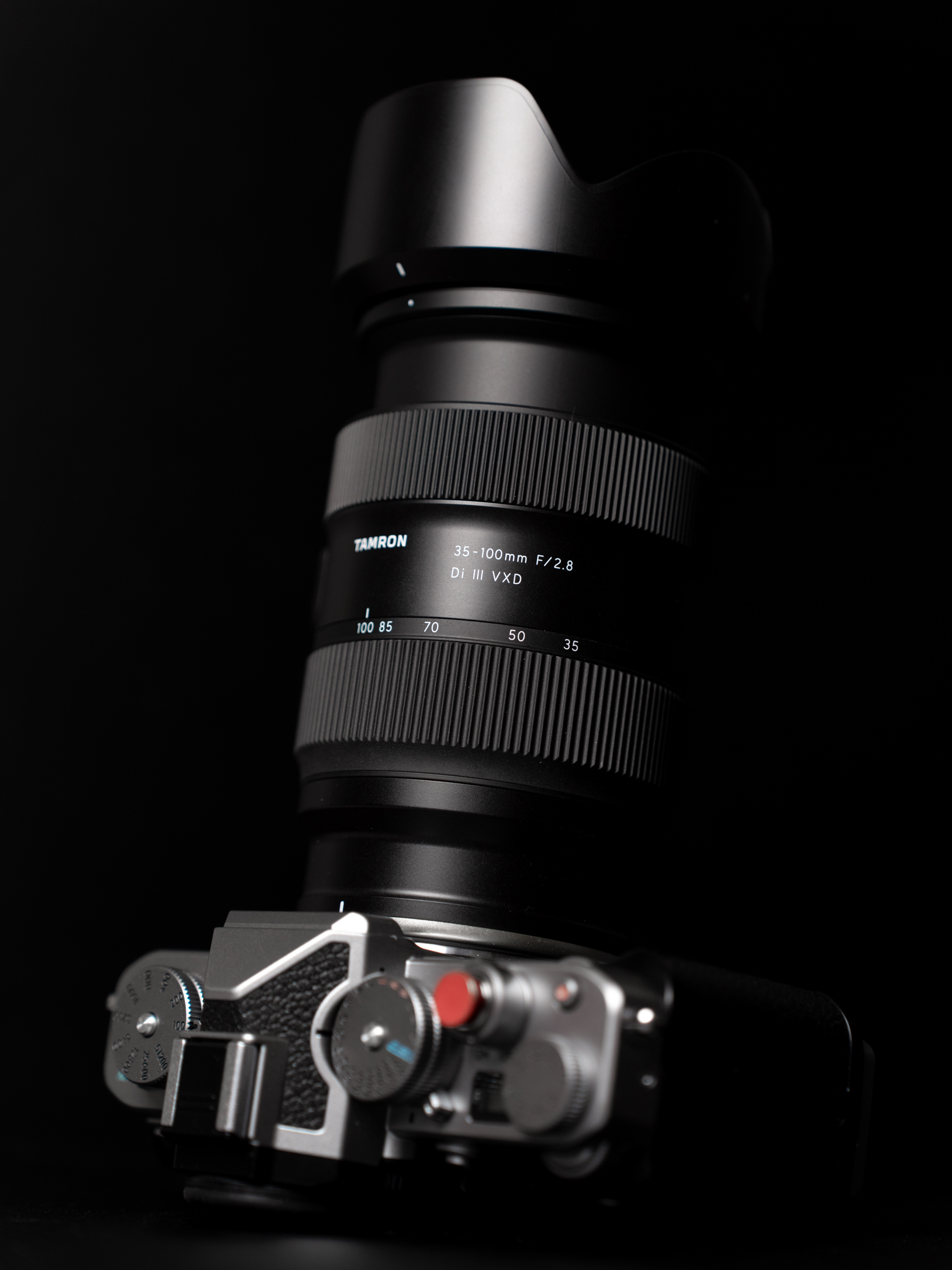 성능과 휴대성의 합리적 접점을 잘 잡아내는 탐론 렌즈답게 35-100mm F2.8 Di III VXD도 카메라에 물렸을 때 꽤나 경쾌합니다. 저는 니콘 Zf에 이 렌즈를 사용하고 있는데 경통의 길이가 손에 딱 쥐어질 정도로 적당하고 무게 균형도 좋습니다. 이와 비슷한 크기, 무게의 28-75mm F/2.8 DI III VXD G2 렌즈를 통해 이미 느꼈던 것입니다. 레트로 디자인의 Zf에는 작은 단렌즈가 잘 어울리지만 줌렌즈를 사용해야 한다면 이 정도가 적절한 것 같아요. 가뜩이나 그립도 빈약한 카메라라서 말이죠.