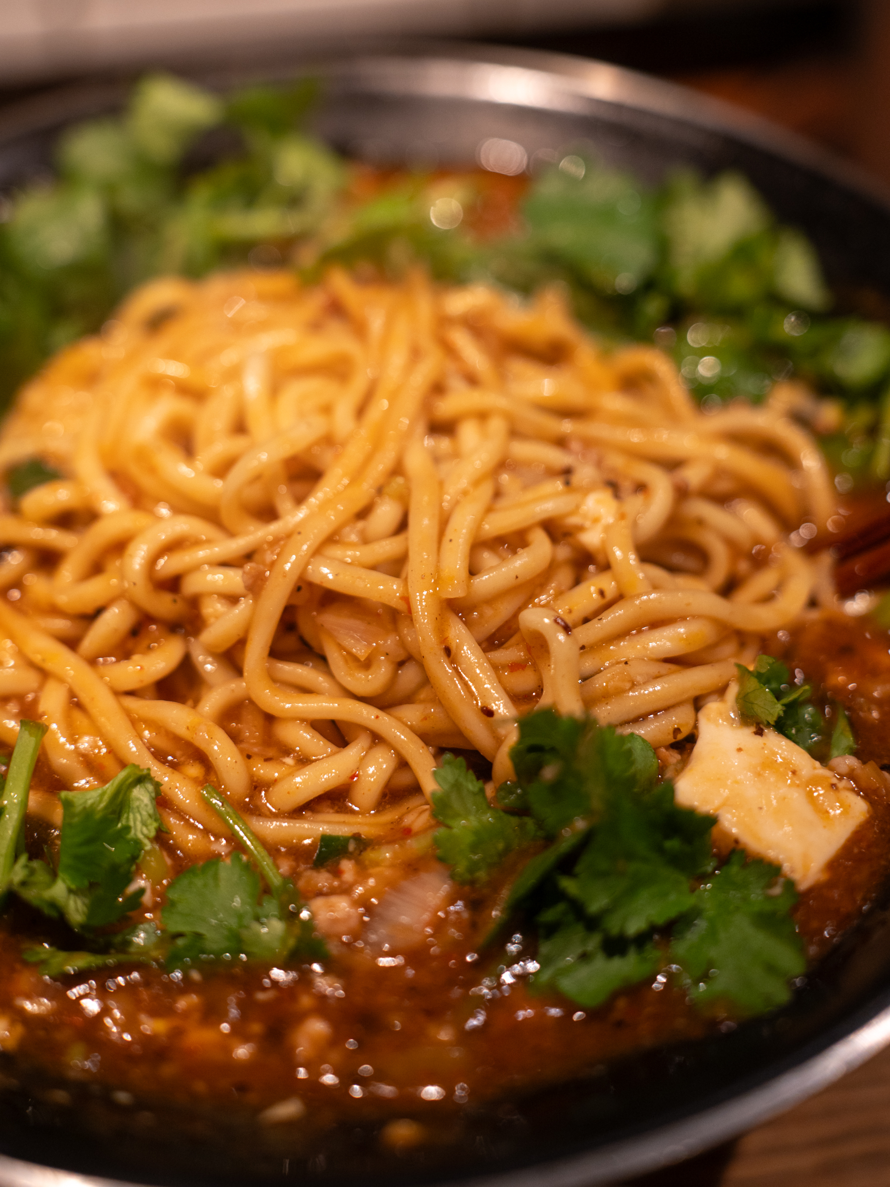 두번째 방문했을 때는 치즈와 돈카츠를 추가한 마파두부면을 먹었습니다. 대기줄에 서 있을 때까지도 산라탕면을 먹을 생각이었으나 가게 안에 들어가 냄새를 맡고 생각이 바뀌었습니다. 좋아하는 거 한 번 더 먹자고. 이번엔 고수 추가 없이 기본 메뉴로 먹었어요.