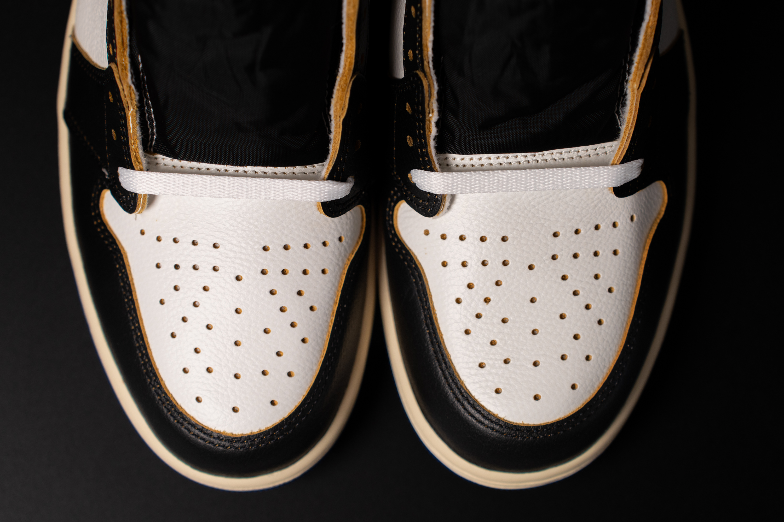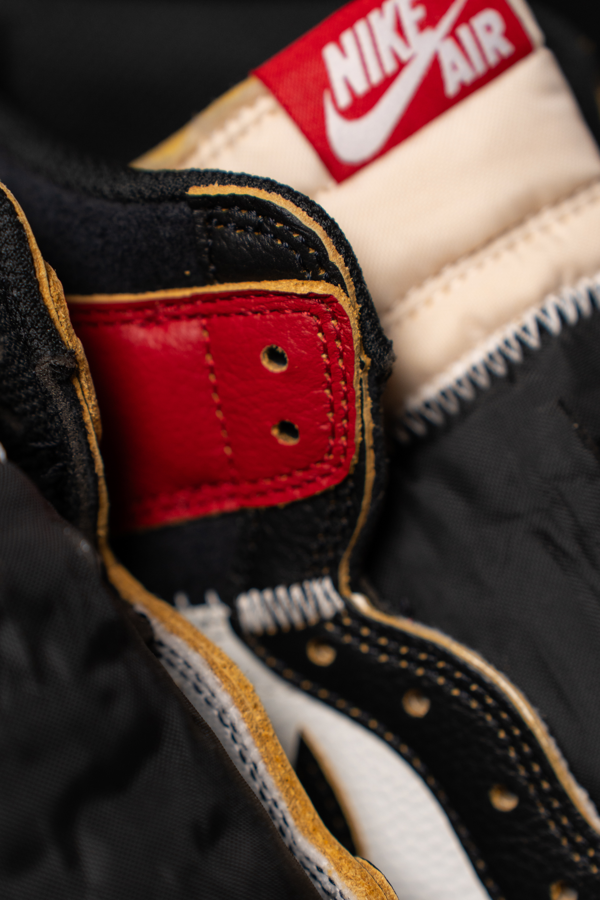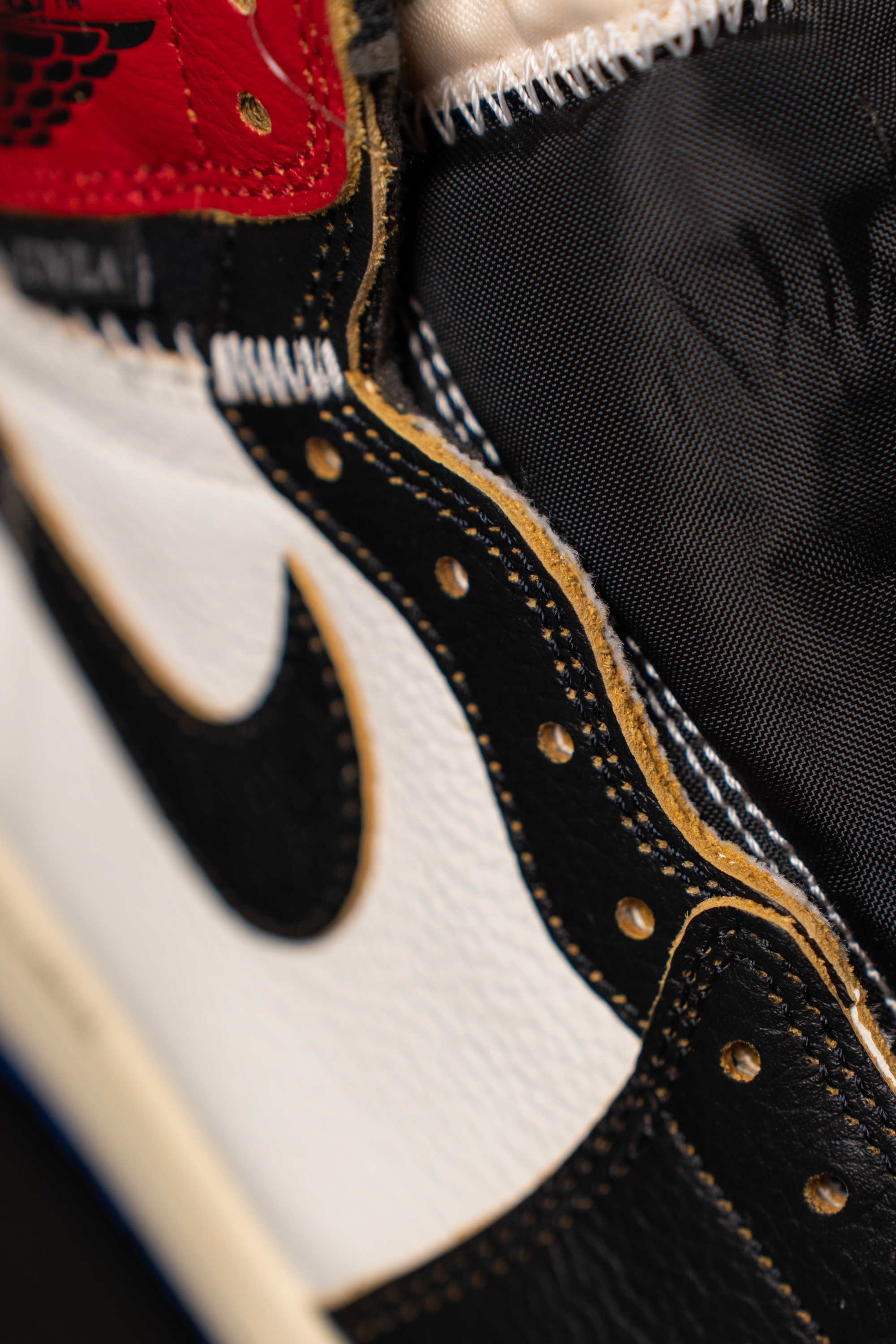 신물을 보고 감탄했습니다. 근 몇 년간 봐 온 조던 1 중 품질이 가장 좋아 보이더라고요. 가죽의 품질도 그렇고 스티치도 꼼꼼하게 잘 돼 있었습니다. 본드 냄새도 별로 안 느껴졌고요. 일반 모델보다는 품질이 확실히 좋습니다.