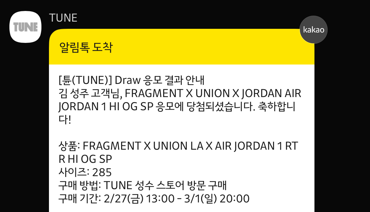 튠에서 당첨이 되긴 되는군요.