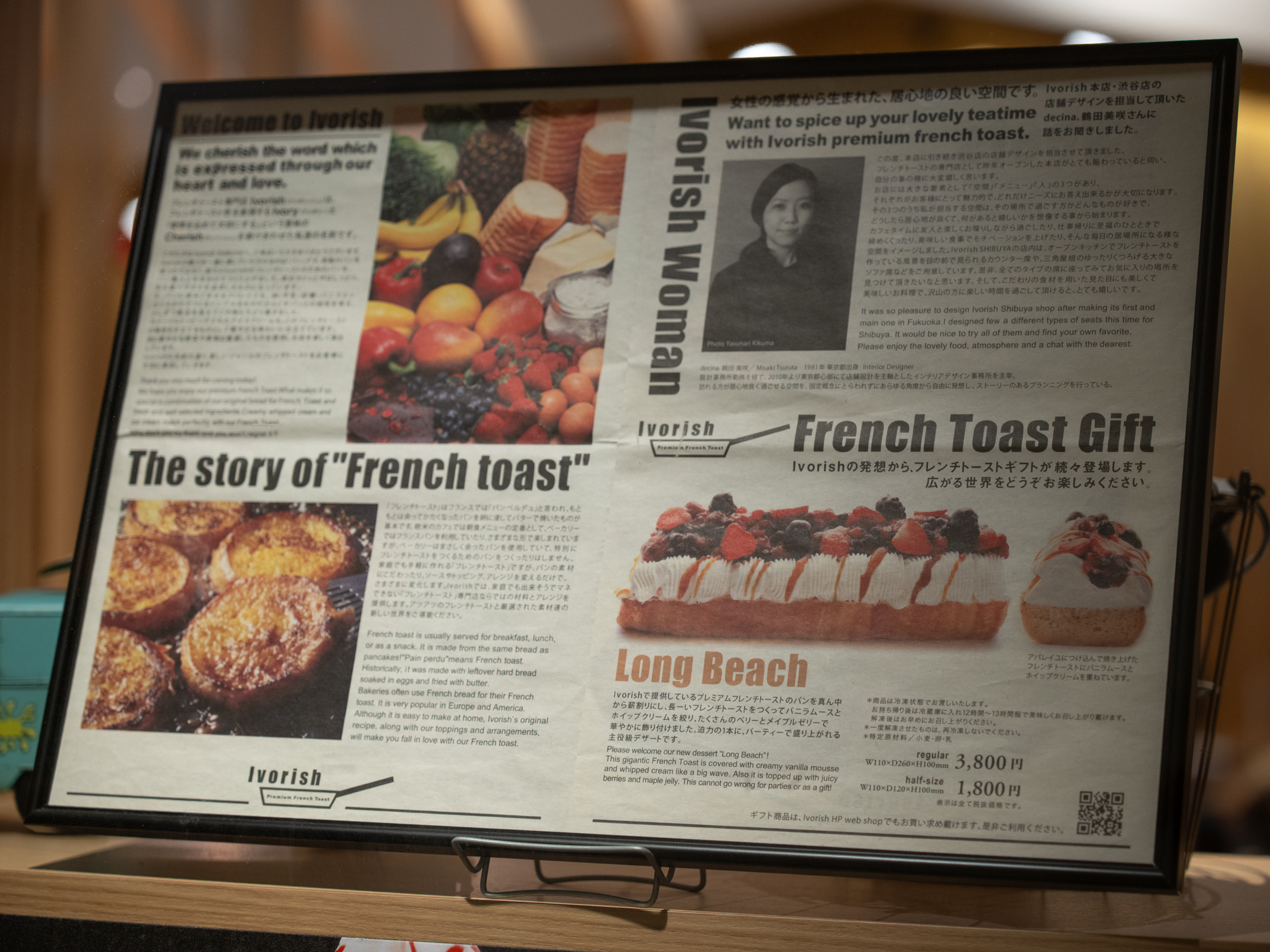 도쿄에서 방문한 두 번째 프렌치 토스트 카페입니다. 첫 번째가 식사용 브런치 메뉴였다면 이집은 완전한 디저트로 프렌치 토스트를 풀어 냈습니다. 거기에 티라미수, 딸기 등의 제철 과일 등 곁들임이 다양해서 여럿이 함께 방문하면 더 좋을 것 같아요. 특히 여성분들이 좋아할 곳입니다.