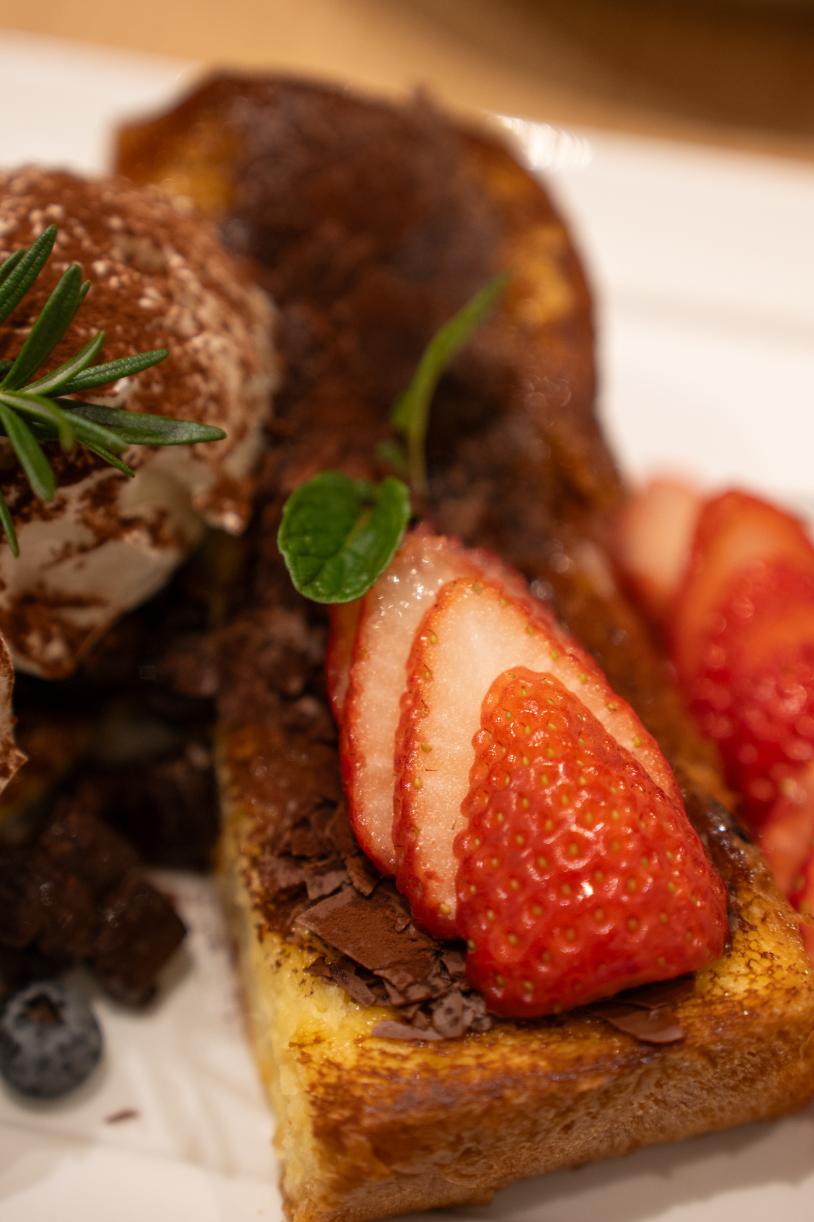 부드럽게 구운 프렌치 토스트와 달콤한 초콜릿 그리고 딸기, 블루베리의 산미, 크림과 아이스크림의 부드러운 식감까지. 입 안에 달콤한 것들이 가득하니 절로 행복해집니다. 이쯤되면 빵이 프렌치 토스트일 이유가 전혀 없음에도 기분이 좋은 건 어쩔 수 없어요. 사실 그래서 좀 아쉽기도 했습니다. 토스트 자체의 맛이 거의 안 느껴졌어요.