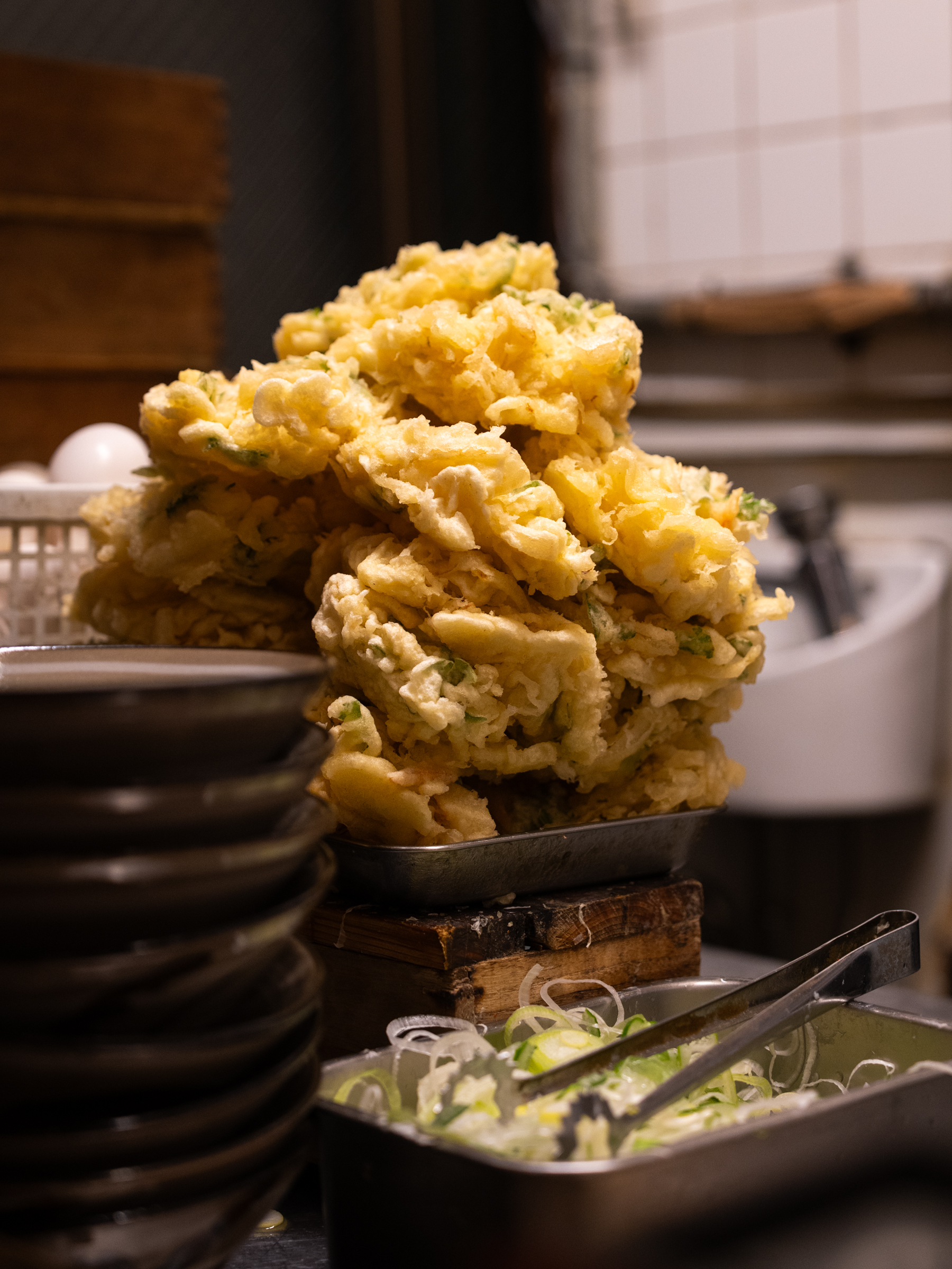 좁은 주방에서는 쉴 새 없이 튀김이 만들어지고 있었어요. 두 분이 계신데 한 분은 튀김을 전담하고 사장님으로 보이는 분이 음식을 내 놓는 것 같았습니다. 고소한 냄새까지 가득한 데다 수북하게 쌓인 튀김을 보고 있으니 허기가 더 심해졌습니다.