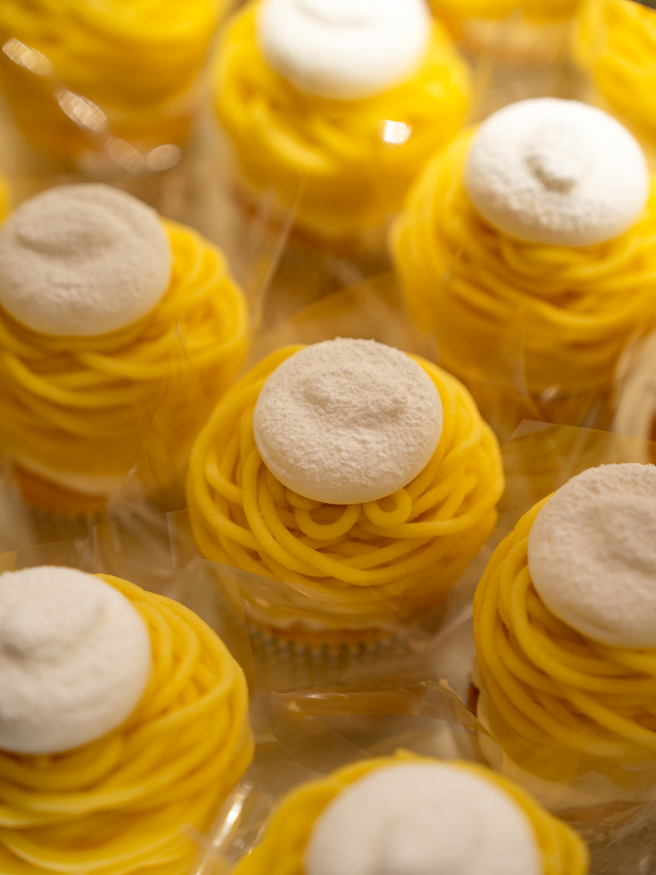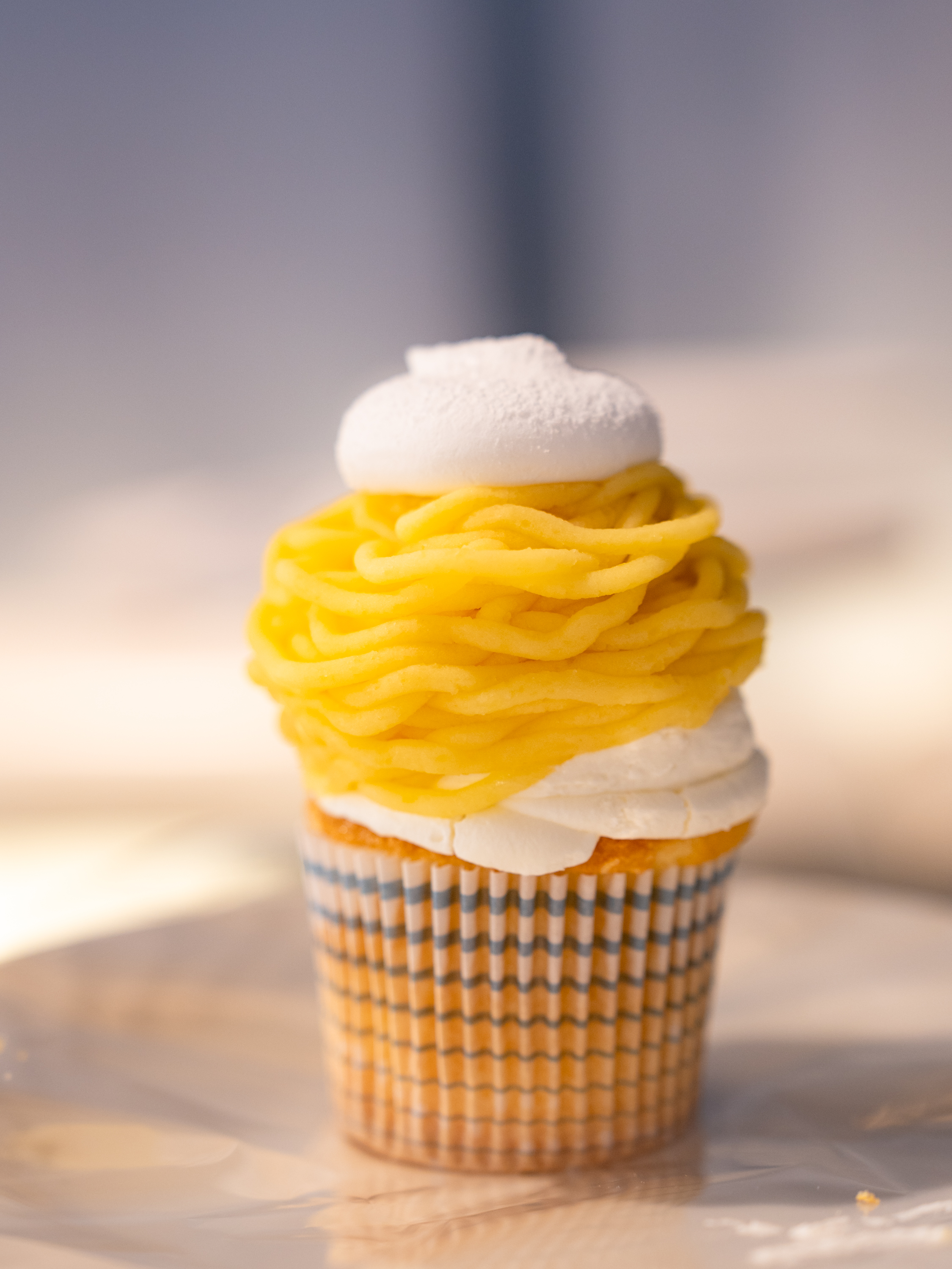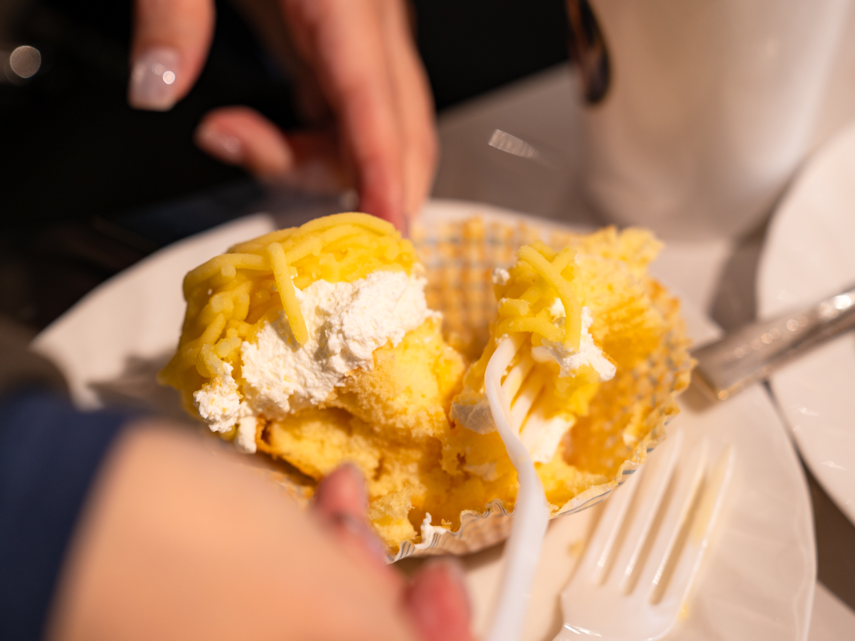 몽블랑의 대표 메뉴 몽블랑입니다(?). 케이크 위에 올린 밤 크림이 노란색인 게 인상적이었어요. 옛날 레시피라 그런지 현대 케이크처럼 매끈한 느낌은 없습니다만 그 투박함이 오히려 매력입니다. 밤보다 빵, 크림의 양이 더 많은 것이 흡사 동네 제과점에서 파는 머핀 같았어요.