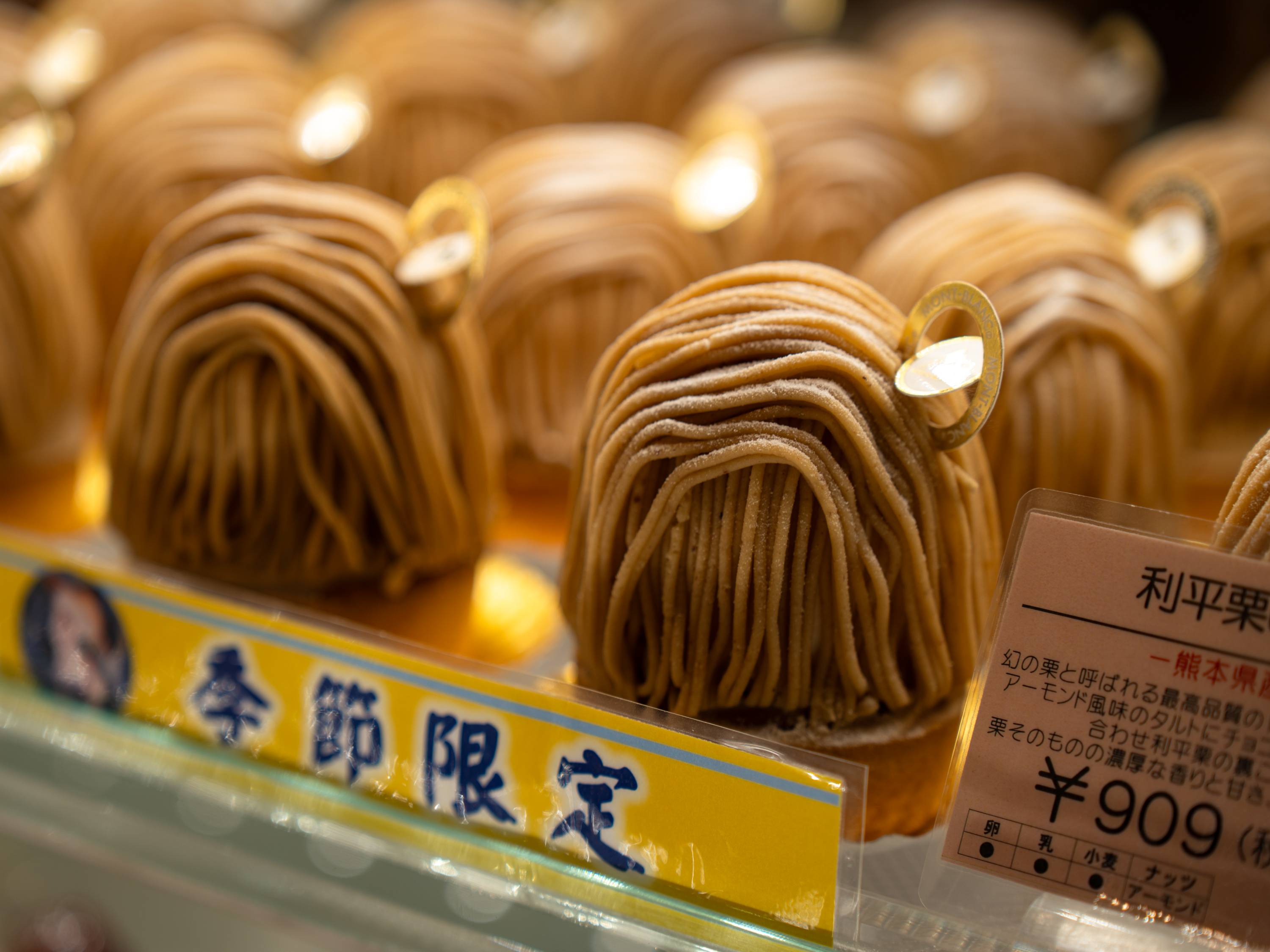 그 외에도 다양한 형태의 몽블랑 케이크가 있습니다. 먹어보니 밤 향이 진한 것이 고급 디저트 먹는 느낌이었습니다. 듣기로는 일본 밤 디저트가 유명하다죠? 우리나라의 공주 밤처럼 밤 맛 좋기로 유명한 도시들에서 공수해 만드는 곳도 있을 만큼.