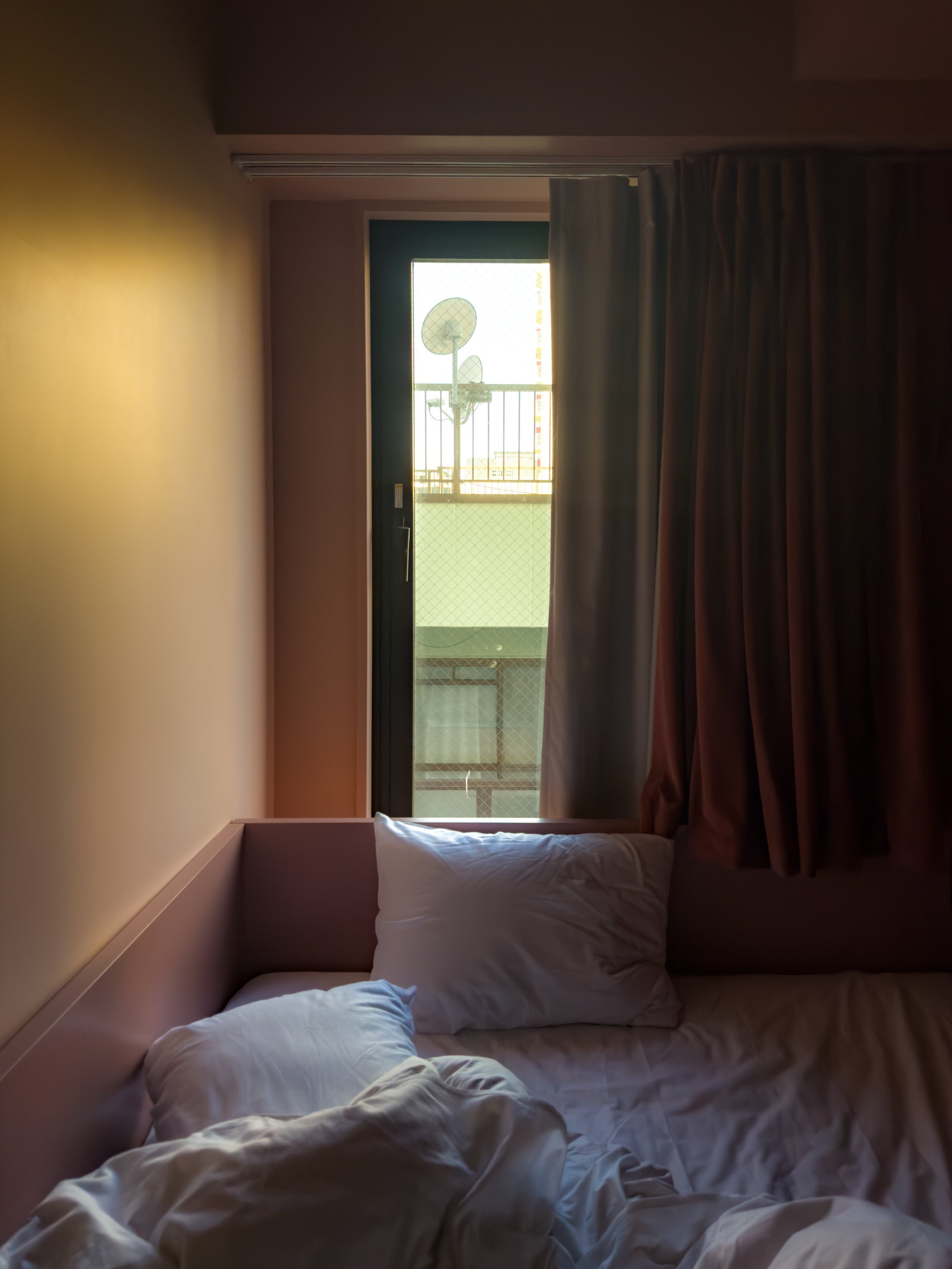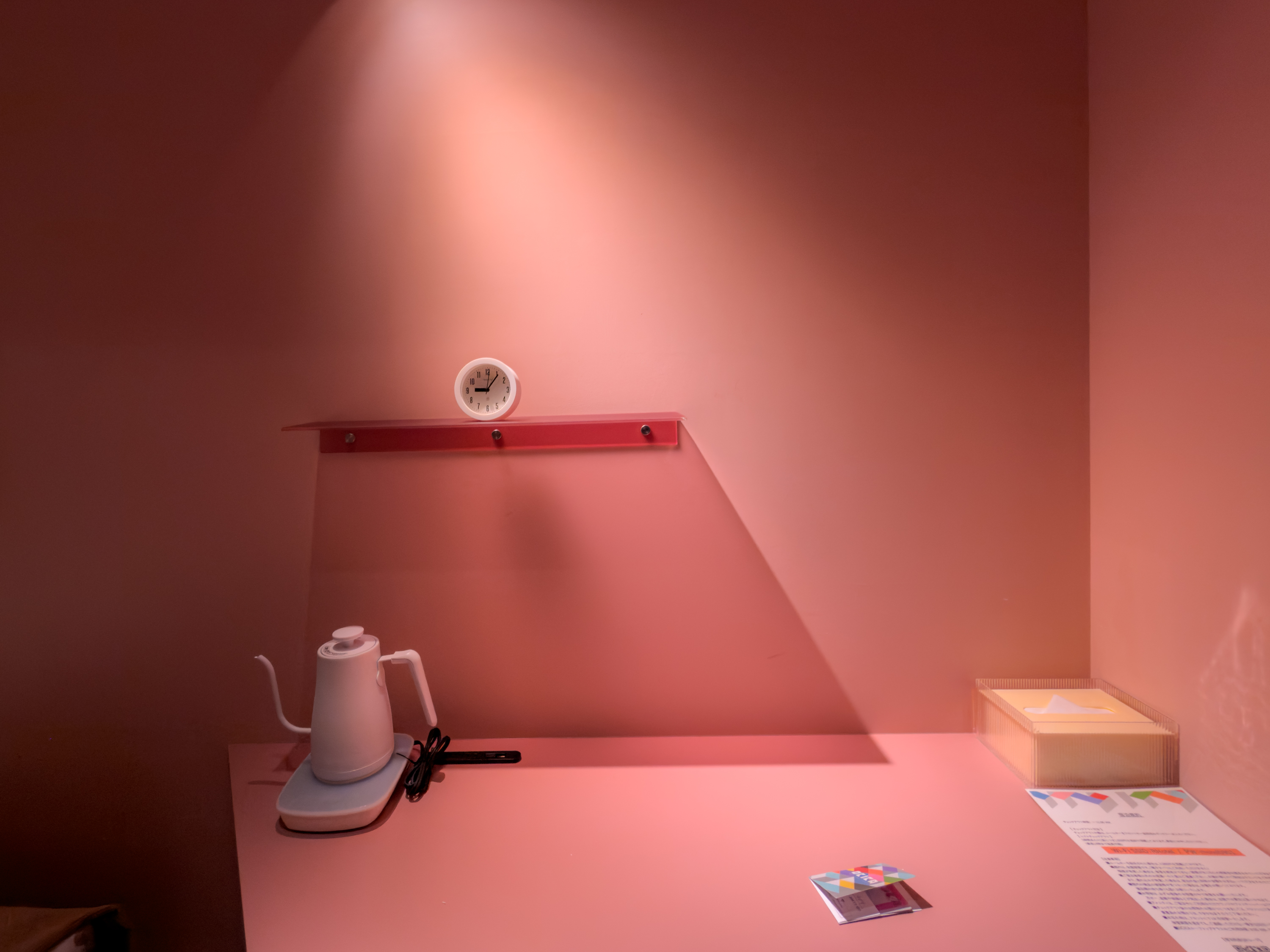 저는 두 번에 나눠 총 3박을 묵었습니다. 각 룸은 컬러로 이름이 붙여져 있어요. 그래서 첫 번째 방문 때 방에 들어서자마자 좀 당황했습니다. 핑크색 벽면이 어쩐지 러브호텔을 연상시켰거든요. 처음엔 낯설었지만 지내보니 누런 벽지보다 낫더라고요.