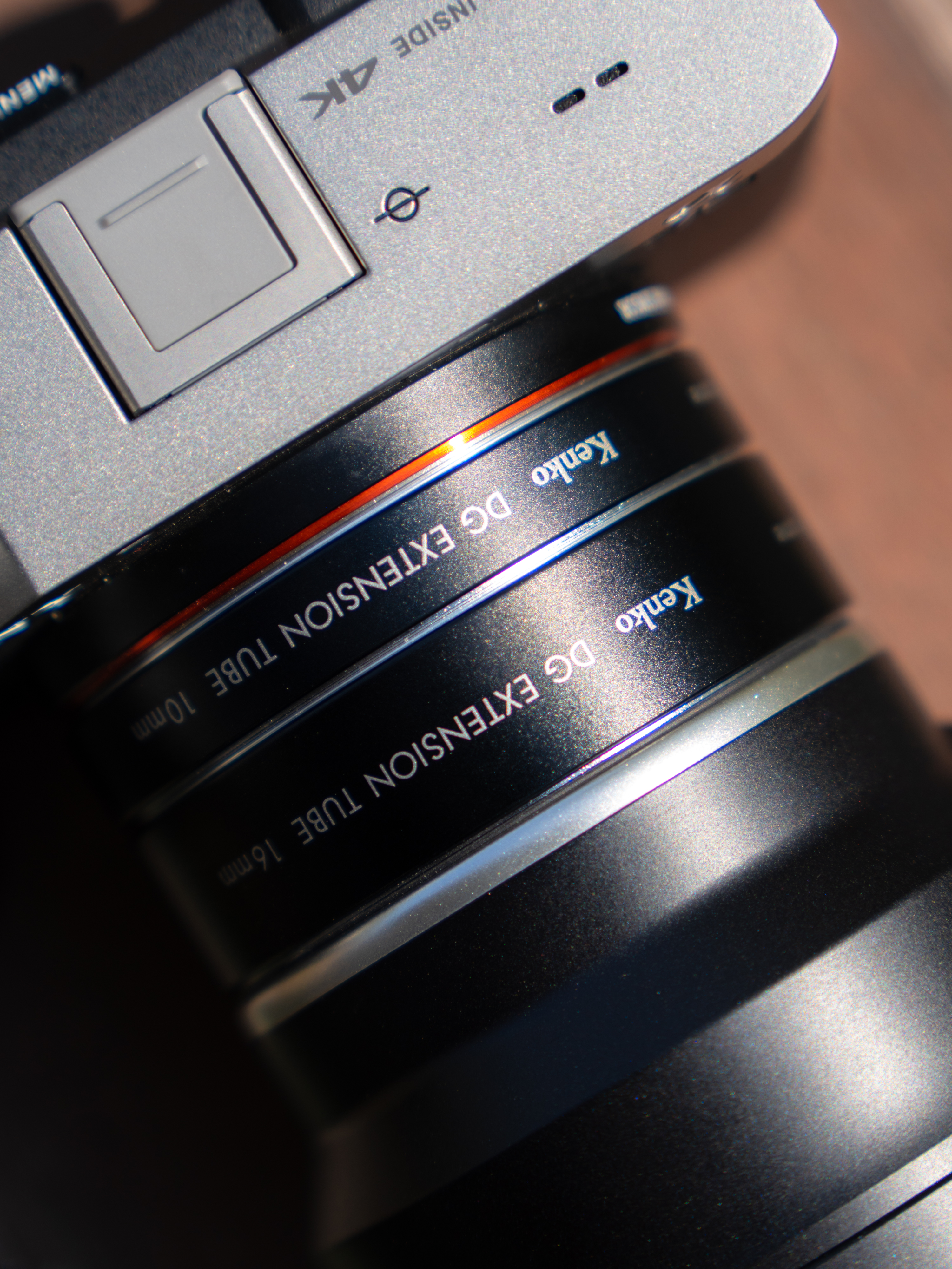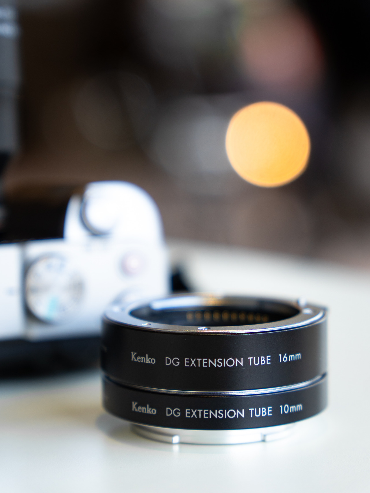 본격적으로 매크로 촬영을 해 보고 싶다면 추가 액세서리를 사용해도 좋겠습니다. 제가 써 본 것들 중에는 겐코의 DG 익스텐션 튜브가 좋았습니다. 카메라와 렌즈 사이에 추가로 마운트하면 근접 촬영 성능이 향상됩니다.