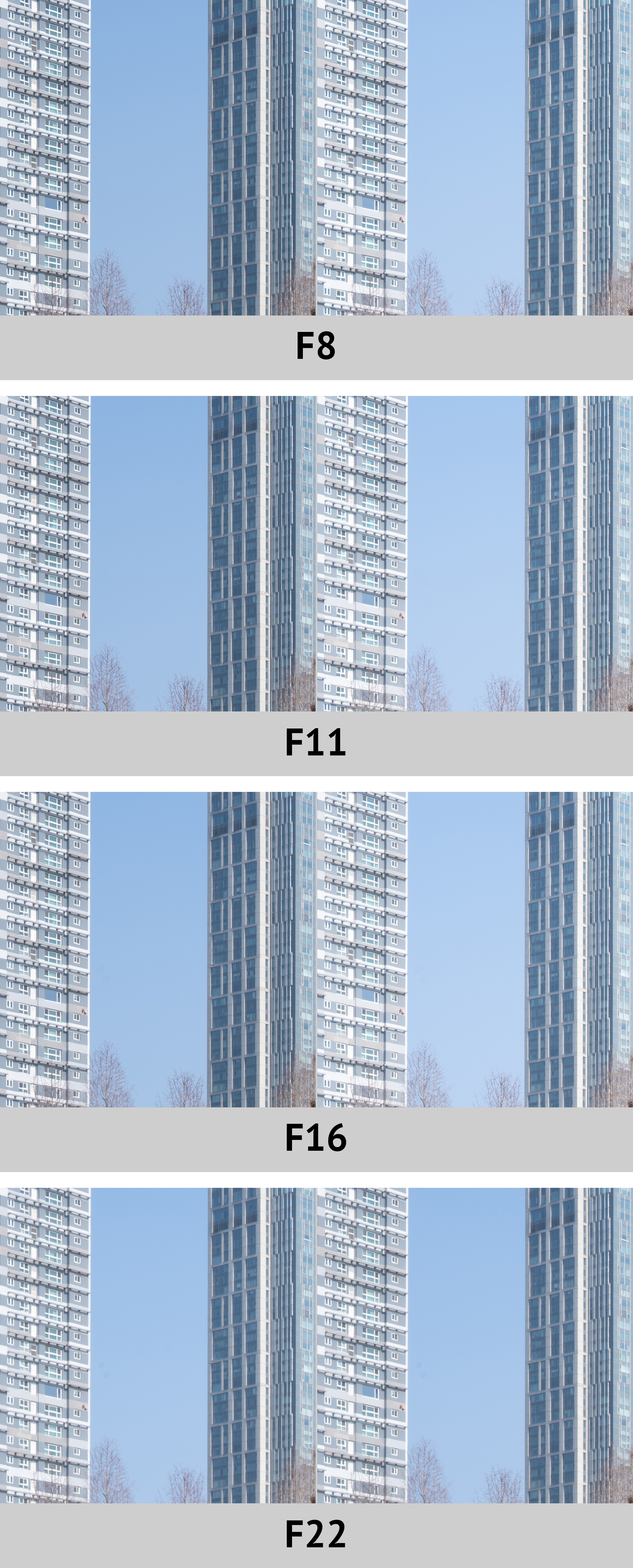 [조리개 값에 따른 해상력 차이 - 중심부]