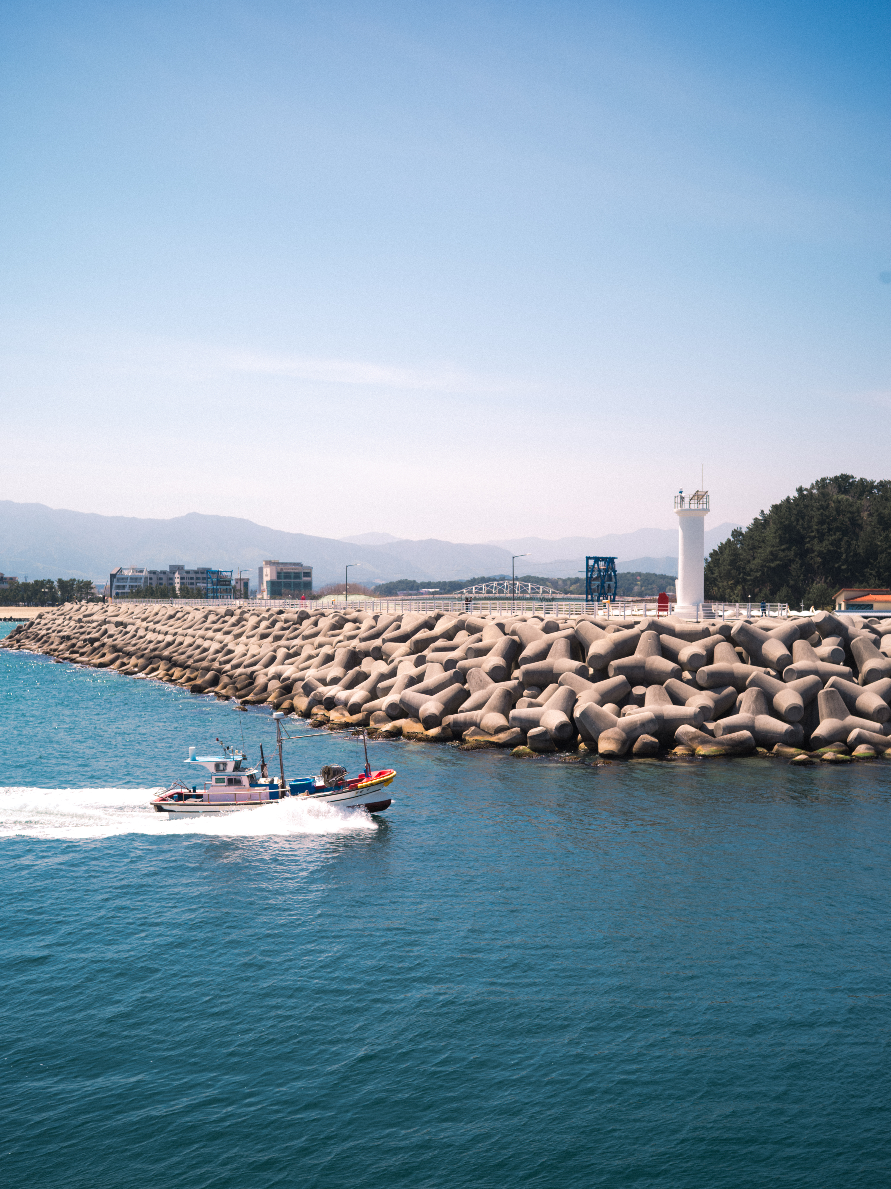 안목해변 끝자락에 있는 강릉항은 어떤 산책길보다 걷기 좋습니다. 이삼십 분 걸어가면 끝에 빨간 등대가 있는데 종착지가 분명하니 걷는 길이 지루하지 않아요. 곁눈으로 보는 물 색깔도 어쩜 그리 아름다운지. 여길 걸을 때마다 다 정리하고 강릉에 와서 살고 싶다는 생각을 합니다.