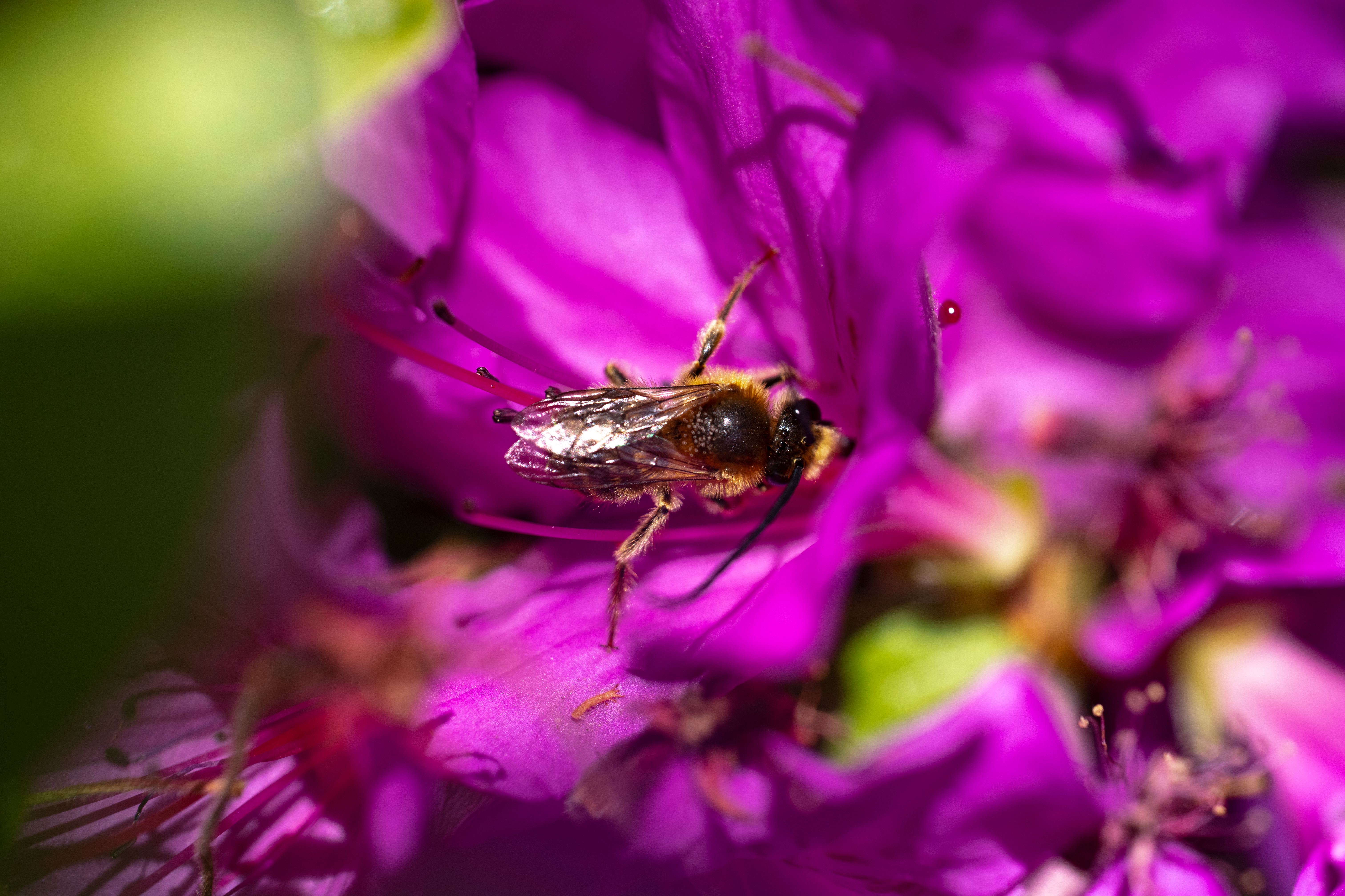 매크로 렌즈를 들지 않았으면 보지 못했을 장면들입니다. 숲에 핀 꽃과 잎들에 렌즈를 가까이 가져다 대니 눈으로 볼 때는 몰랐던 생명들이 많더군요. 쉬지도 않고 열심히 꿈틀거리고 날아 다녔습니다. 그것들을 쫓아 다니느라 시간을 한참 보냈습니다. 핸드헬드 매크로 촬영은 쉽지 않습니다. 곤충들도 빠르게 움직이는 데다 렌즈의 조리개 값을 어지간히 높게 설정하지 않으면 포커스 아웃이 쉽게 발생하거든요. 이 렌즈의 최대 개방 조리개 값이 F2.8인 것을 아쉬워하는 분들이 많지만 접사 촬영에 한정한다면 전혀 문제될 것이 없습니다. F10 이상의 조리개 값이 필요할 때가 많거든요.